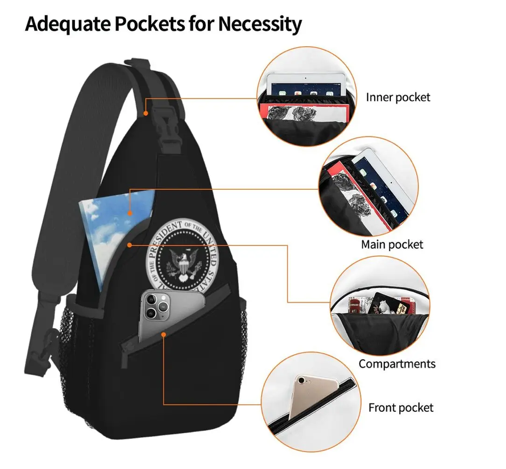 Description: Showcase your support with the Trump Presidential Seal Sling Bag. This versatile and stylish sling bag features the iconic presidential seal, making it perfect for Trump supporters. Ideal for daily use, travel, and outdoor activities, it combines functionality with a bold statement.